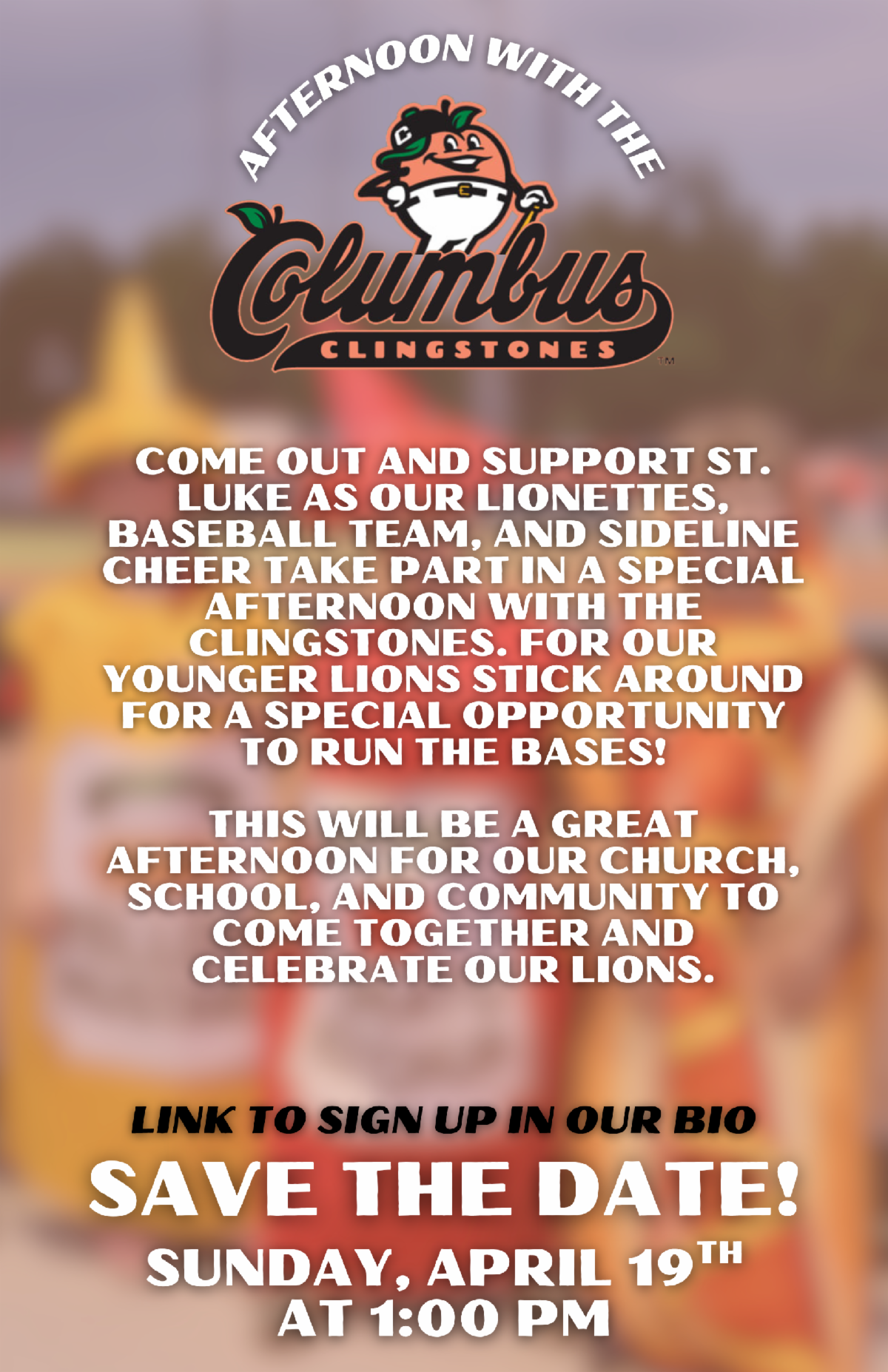 St. Luke School will be attending the Clingstones game on April 19 at 1:00. Click HERE for all details. Click HERE to purchase tickets.